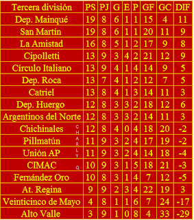 La tercera división de Deportivo Mainqué está haciendo un gran torneo, el fin de semana derrotó a Atlético Regina y se consolidó como único escolta del puntero de la categoría, San Martín. La figura estelar del encuentro fue Enzo Mellado que fue el autor de los 3 goles para sellar el 3 a 1 definitivo en el score.